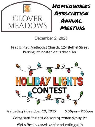 Please engage your board of directors with any questions, feedback or to offer volunteering your time to support our community. We have a direct contact link at www.clovermeadows.org as well as a listing of each board members email address.
